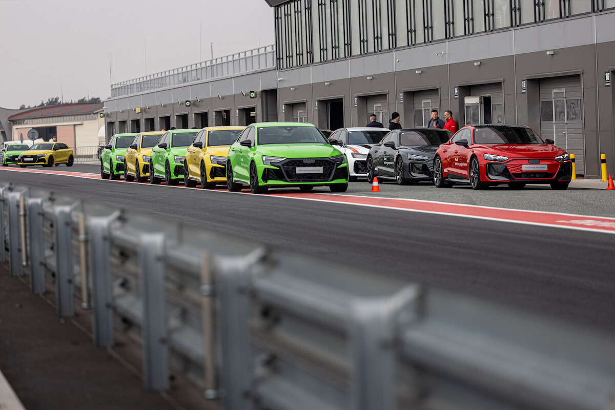 - Jazda w kolumnie mix modeli RS – porównanie charakteru różnych modeli Audi RS na torze.
