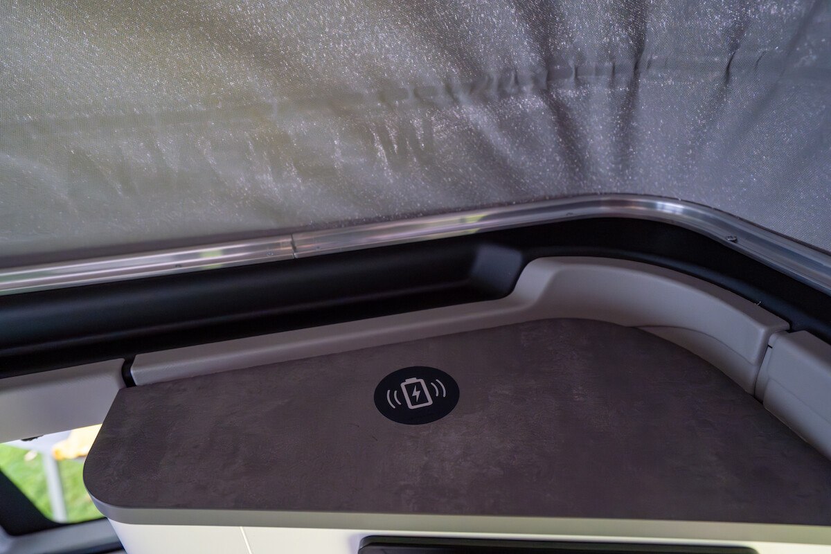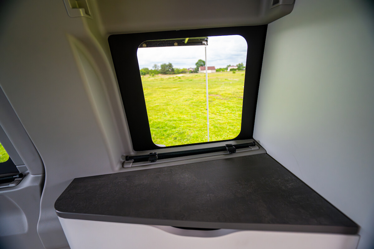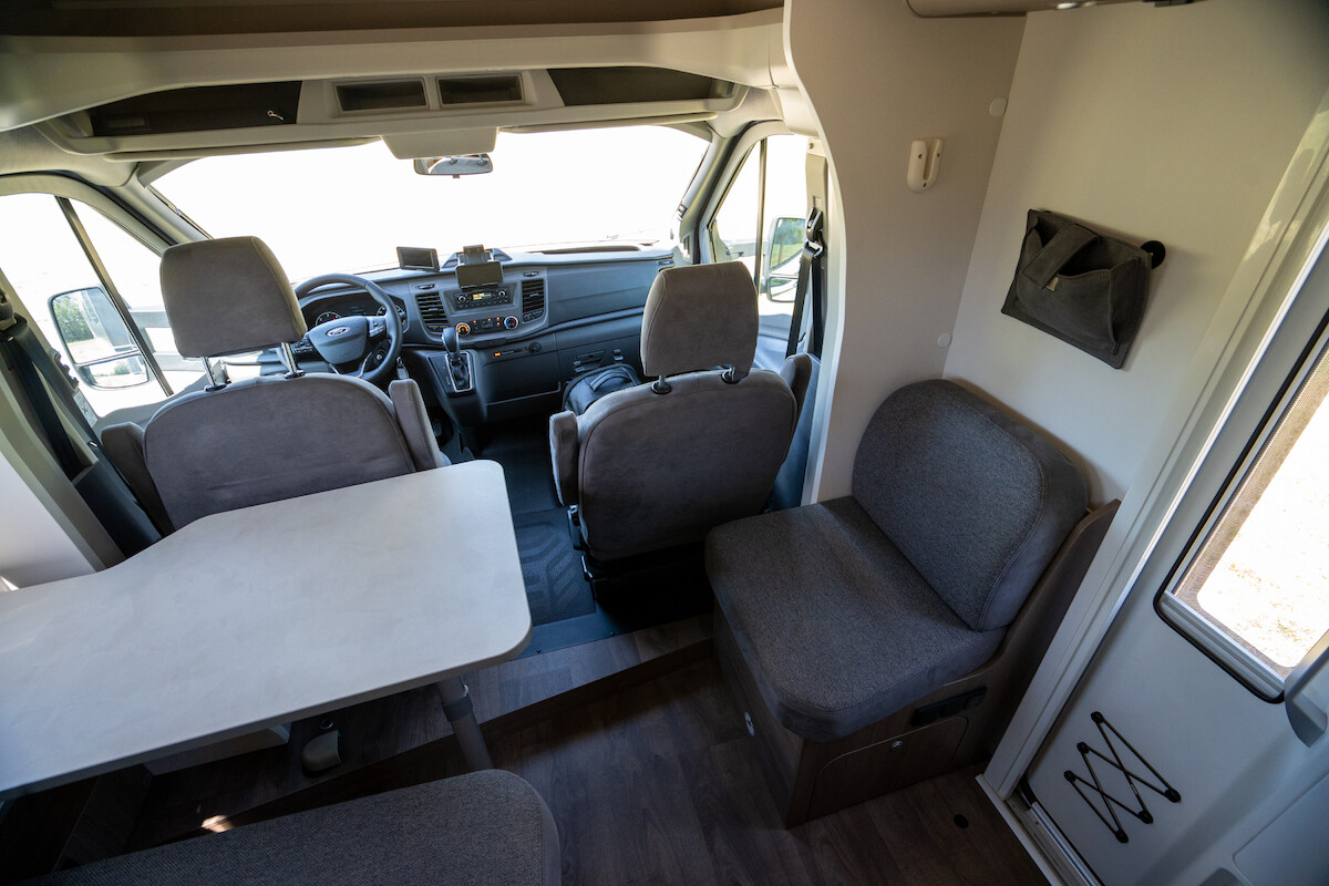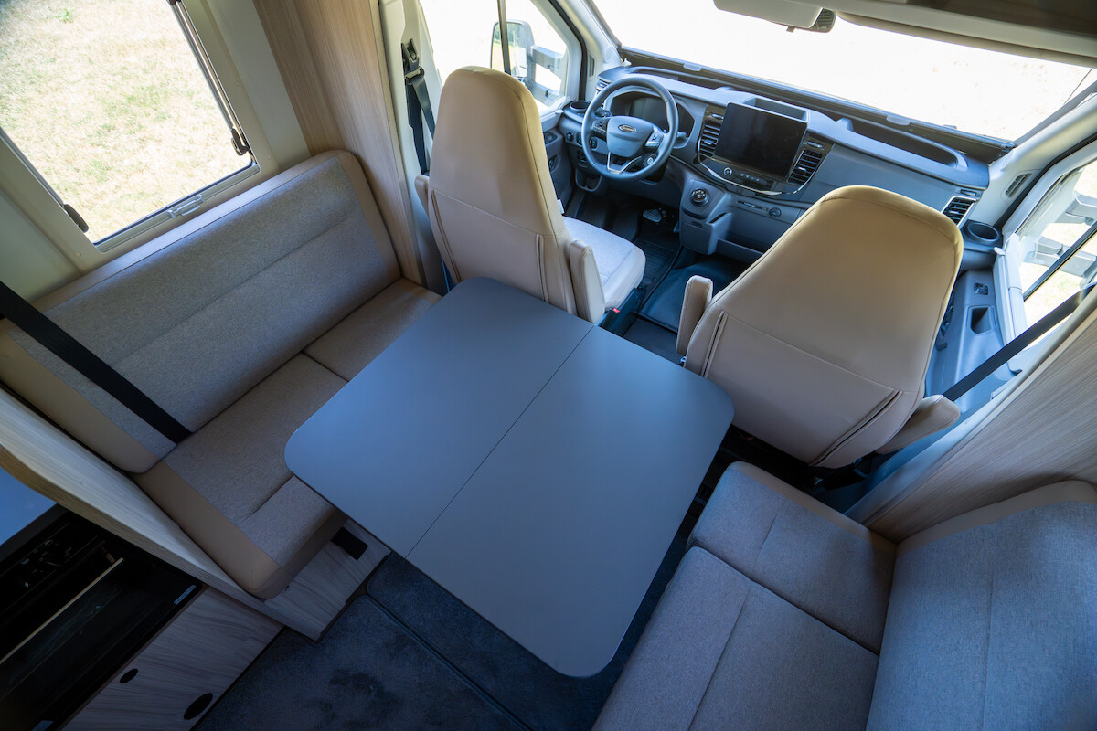 Fotel kierowcy i pasażera obracają się o 180 stopni – dzięki kabinę Nuggeta można szybko zmienić w komfortowy salon. Na liście wyposażenia znalazła się również rozwijana markiza oraz stolik zewnętrzny wraz z krzesłami.