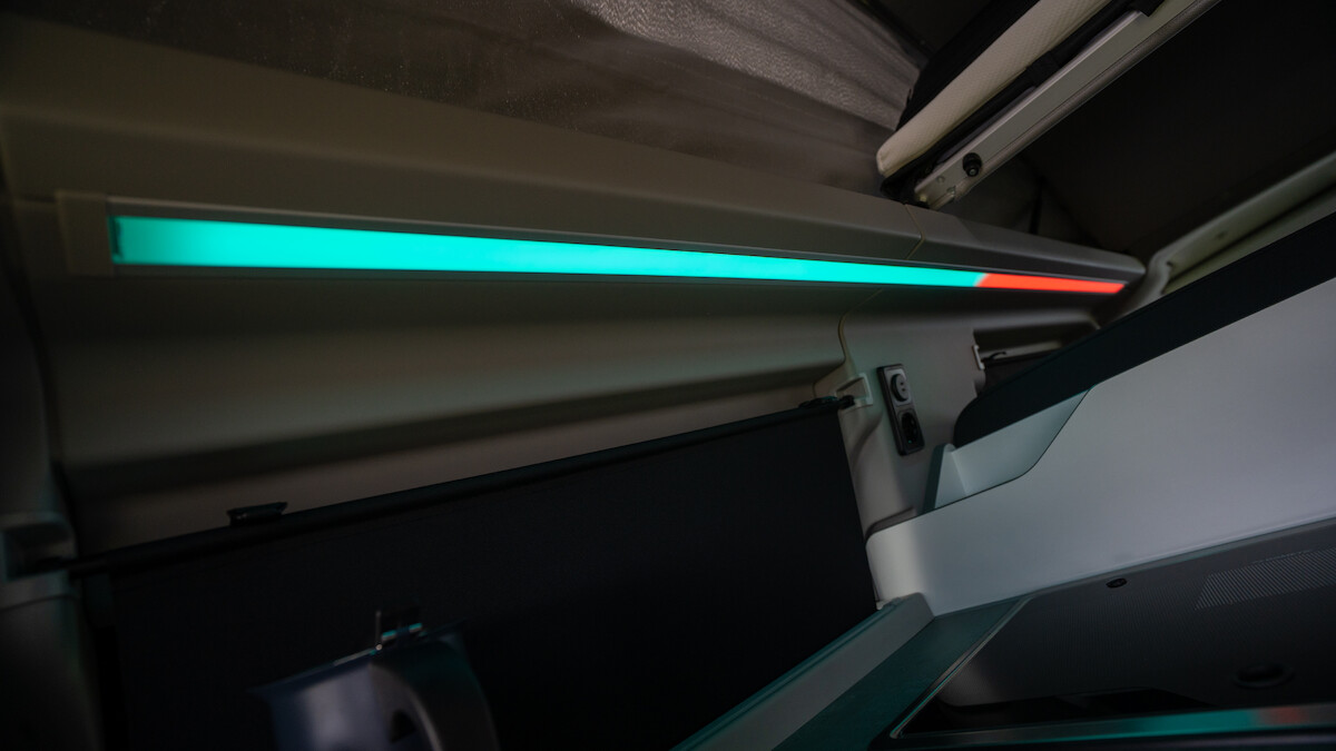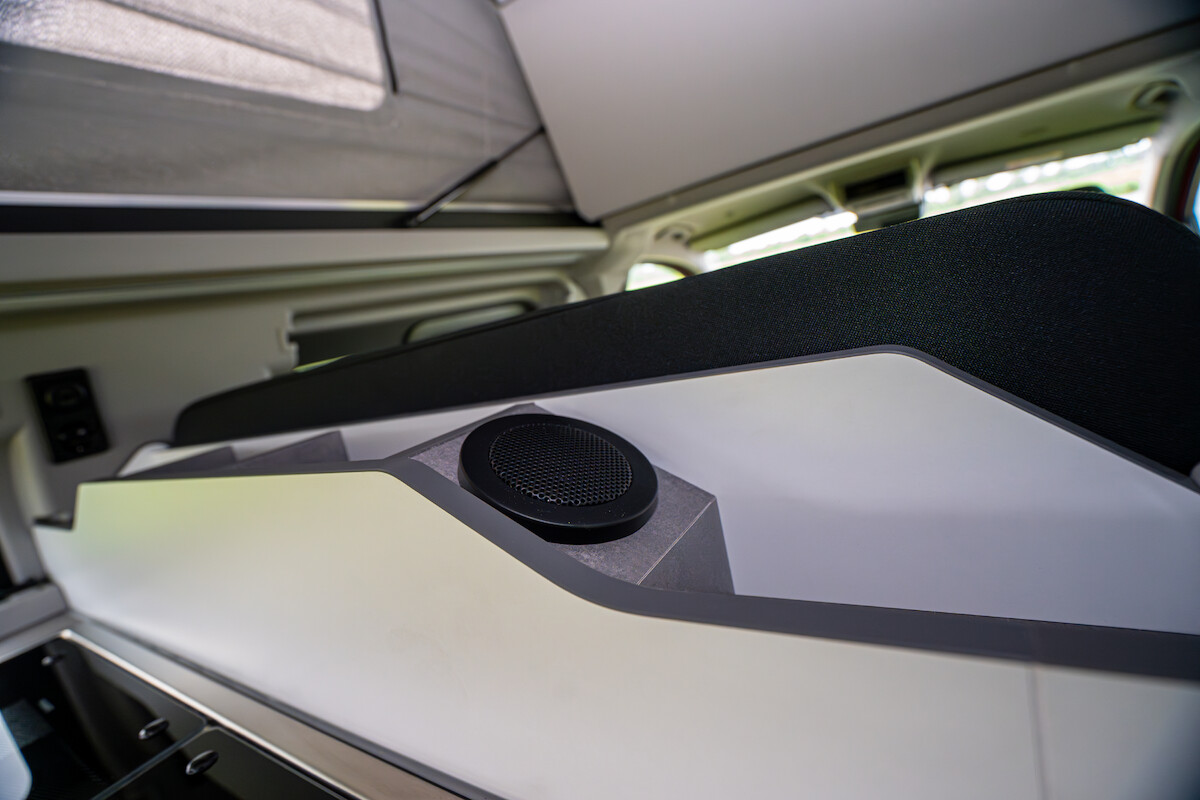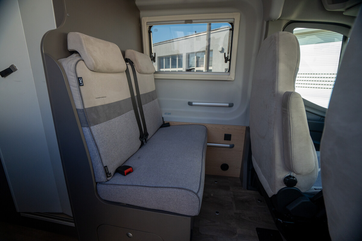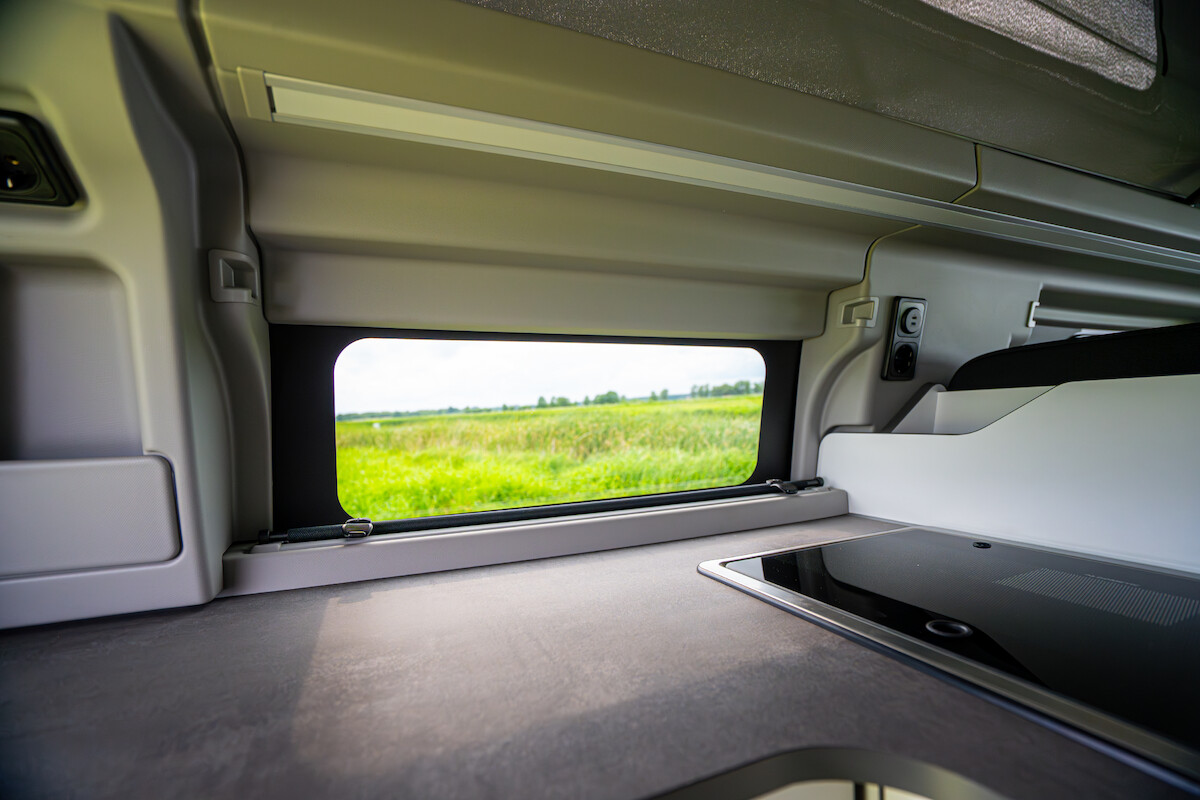 Fotel kierowcy i pasażera obracają się o 180 stopni – dzięki kabinę Nuggeta można szybko zmienić w komfortowy salon. Na liście wyposażenia znalazła się również rozwijana markiza oraz stolik zewnętrzny wraz z krzesłami.