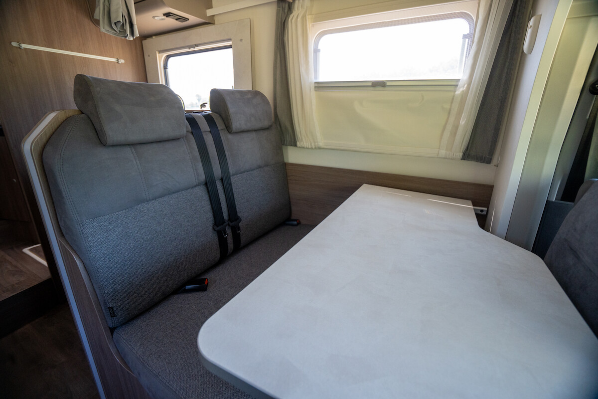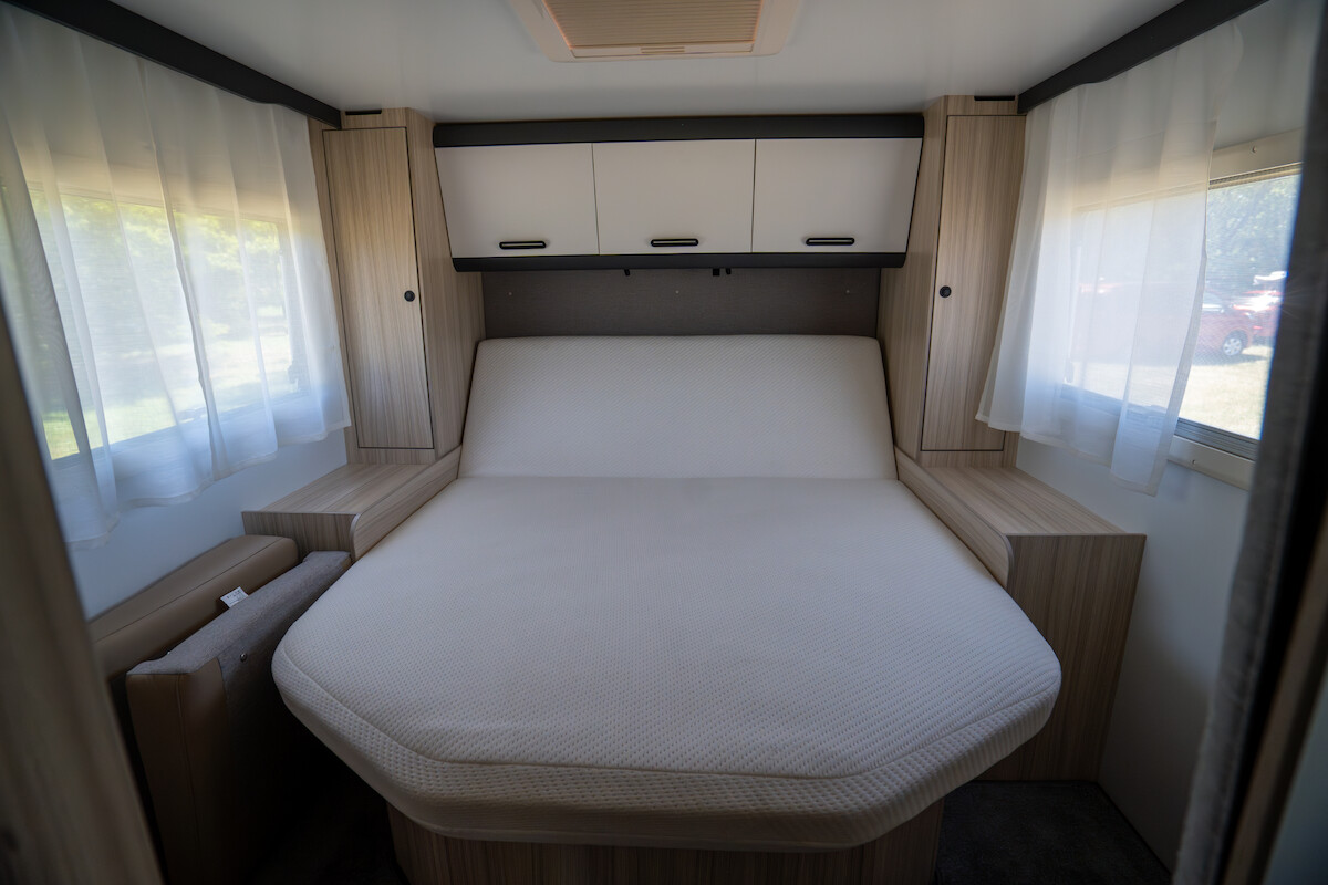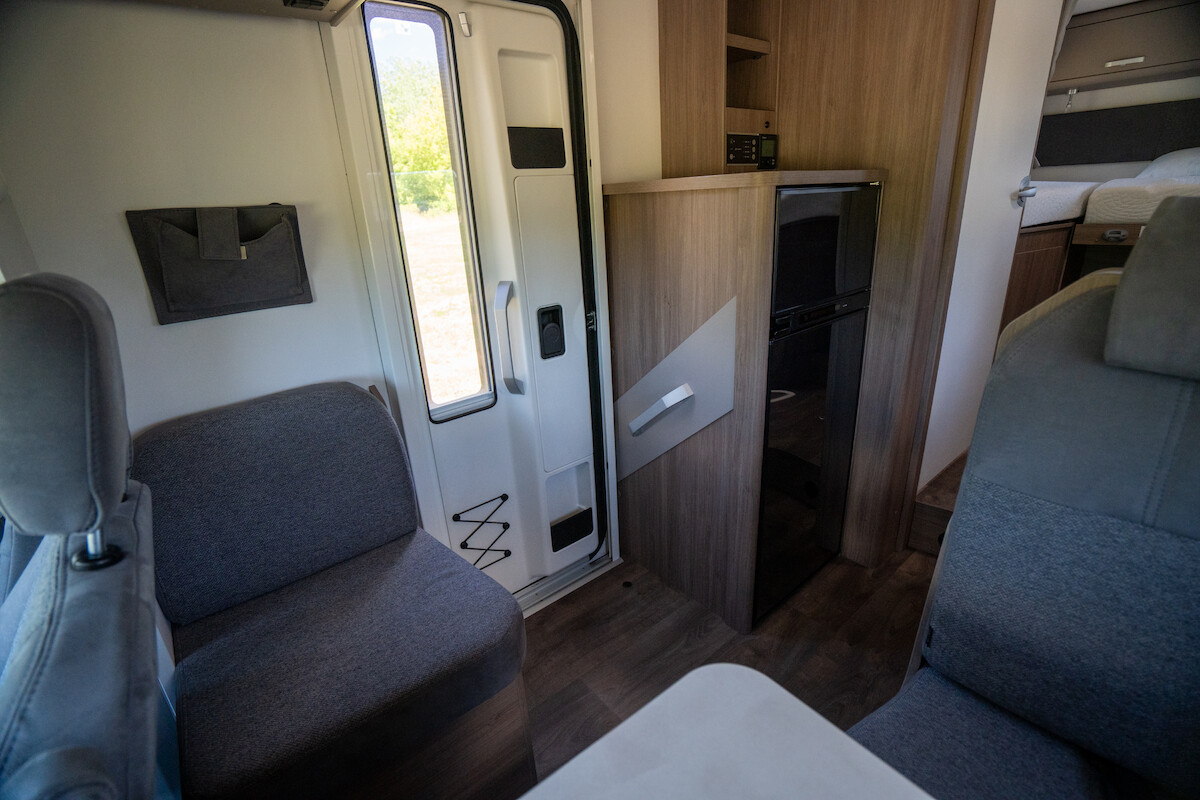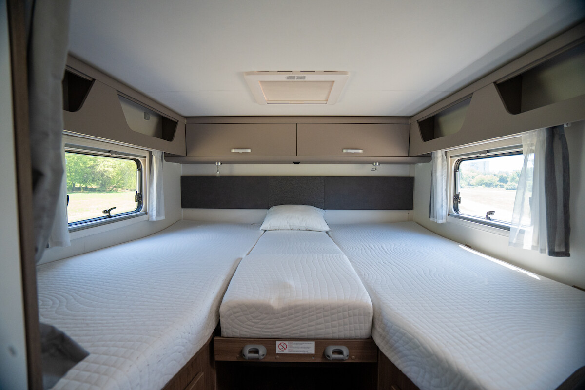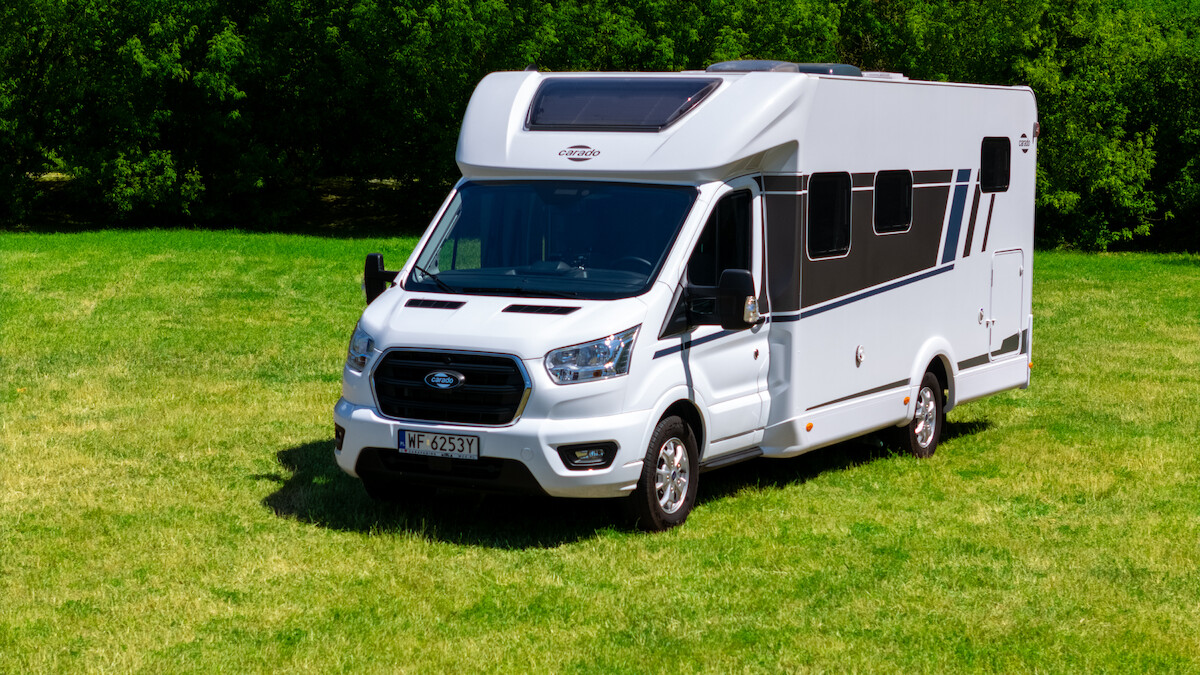 Carado, będące częścią niemieckiej grupy Hymer, również oferuje dwa miejsca do spania – w tylnej części pojedyncze łóżka z możliwością połączenia w jedno duże, oraz dodatkowe miejsce do spania w salonie. W części wypoczynkowej można wygospodarować miejsce dla nawet pięciu osób, a dzięki kompaktowej konstrukcji udało się zmieścić kuchnię w kształcie litery L z trzypalnikową kuchenką gazową.