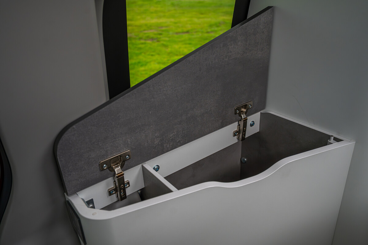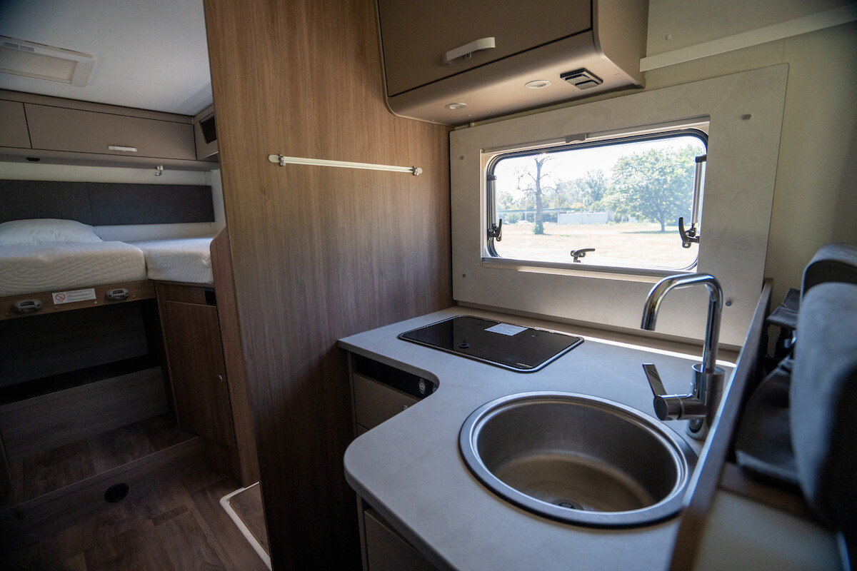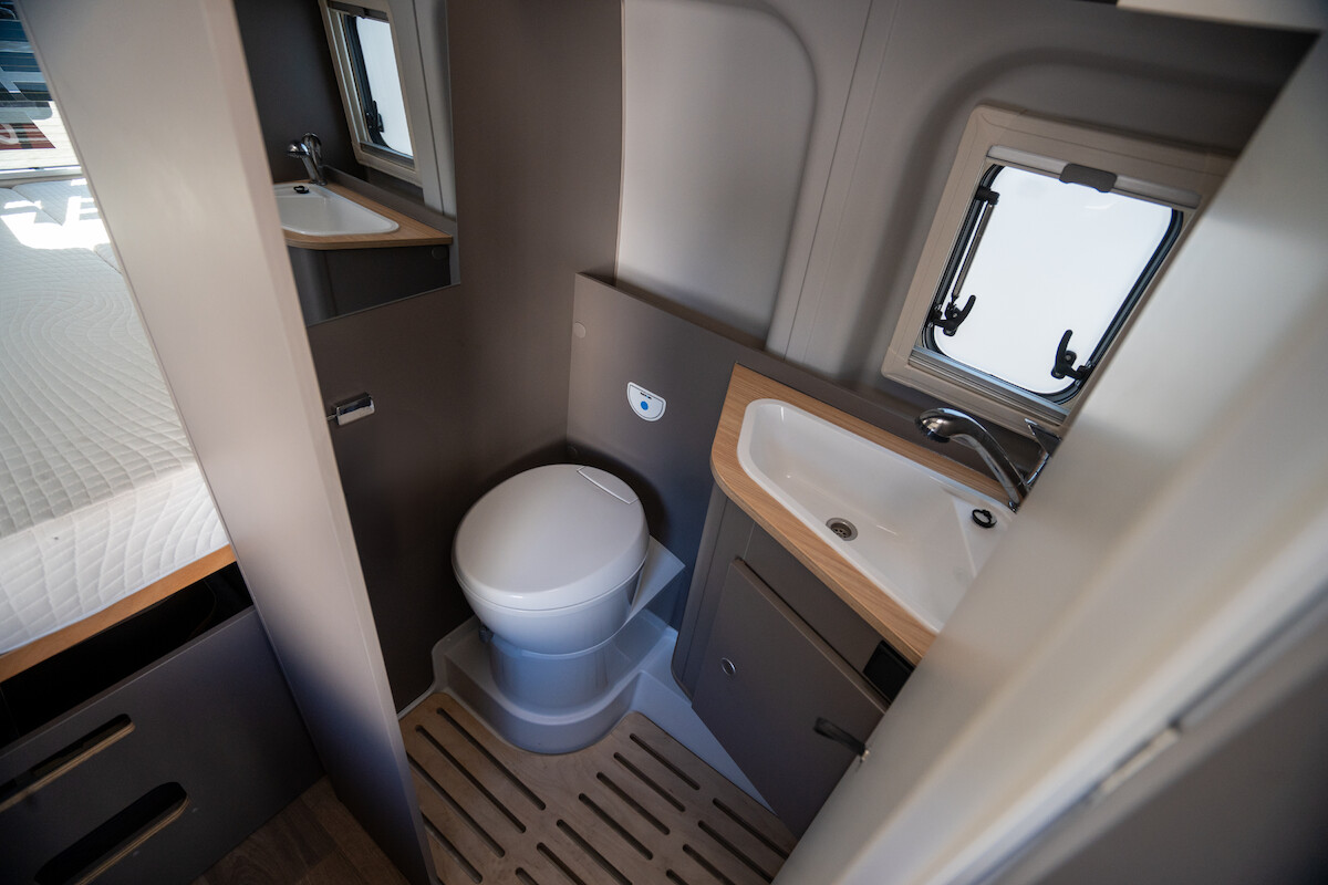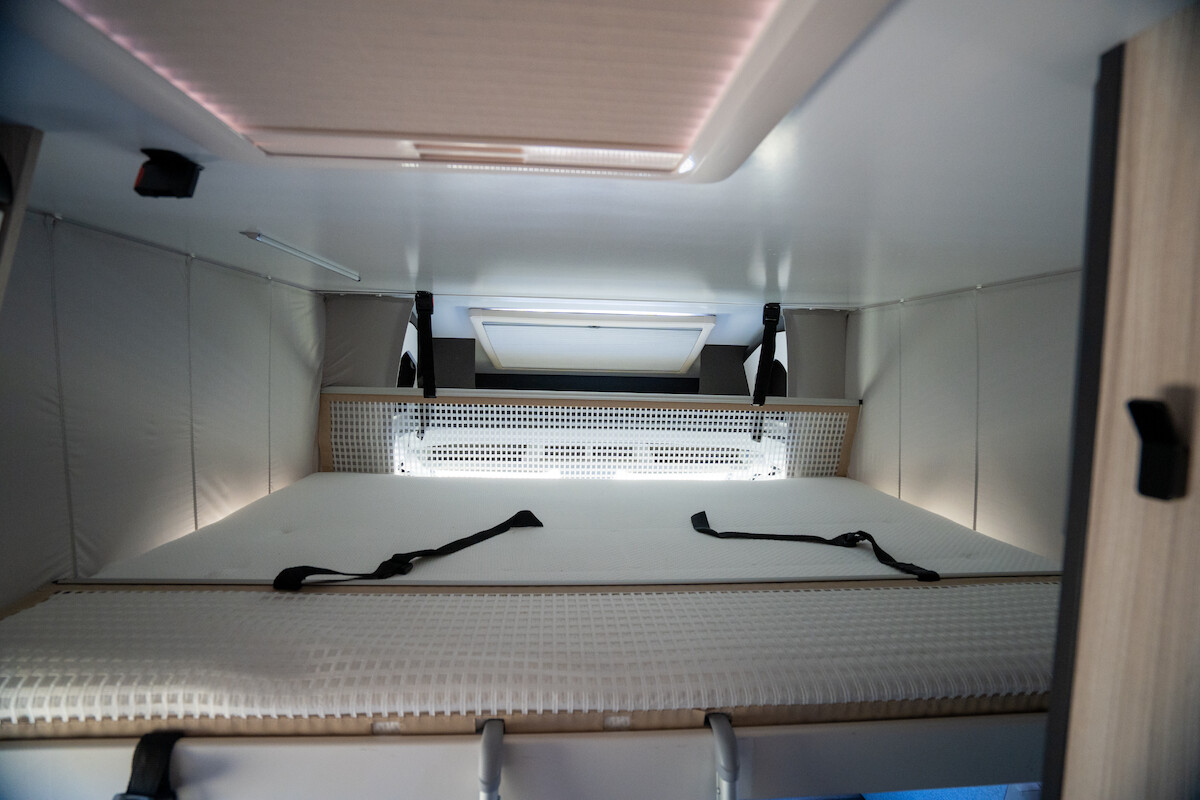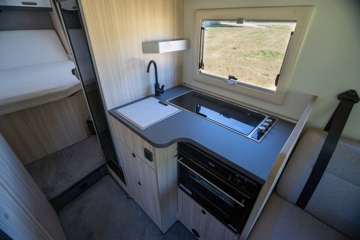 Carado, będące częścią niemieckiej grupy Hymer, również oferuje dwa miejsca do spania – w tylnej części pojedyncze łóżka z możliwością połączenia w jedno duże, oraz dodatkowe miejsce do spania w salonie. W części wypoczynkowej można wygospodarować miejsce dla nawet pięciu osób, a dzięki kompaktowej konstrukcji udało się zmieścić kuchnię w kształcie litery L z trzypalnikową kuchenką gazową.