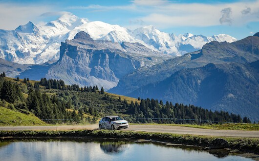 Rajd Mont-Blanc: Opel Corsa Rally Electric na tle alpejskich szczytów